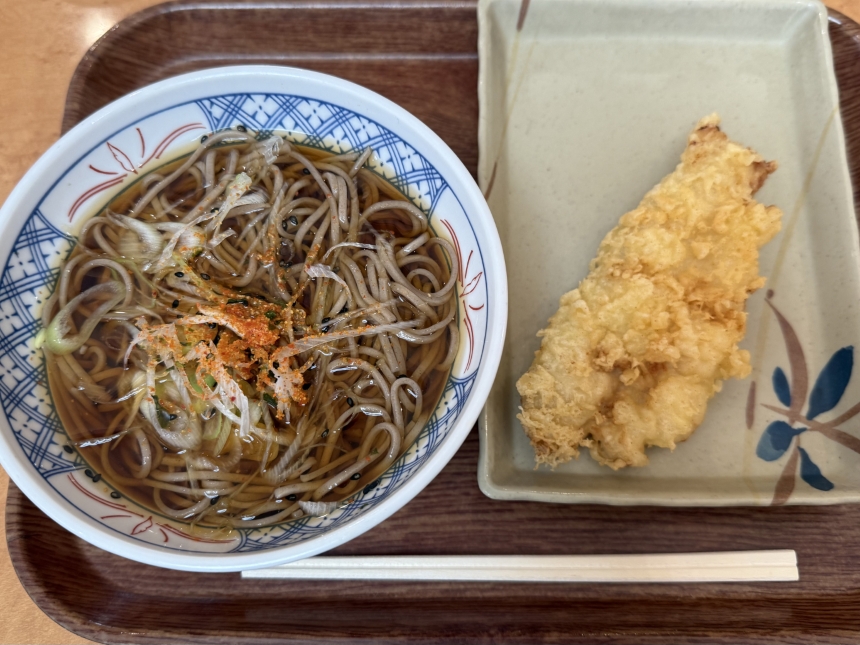 今日のランチは、クリエイトレストランツHDの株主優待券を利用して、肉麺 右衛門のかけ蕎麦ととり天をいただきました。
