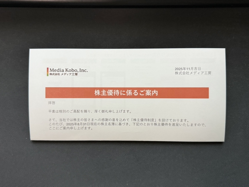 202511 株主優待 メディア工房