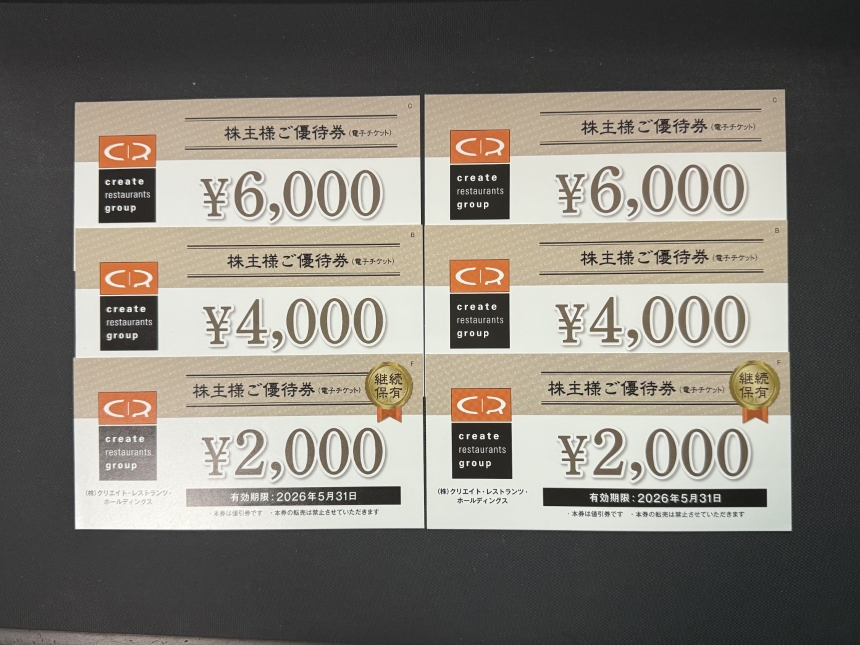 20251114日、クリエイトレストランツHDより株主優待が届きました。