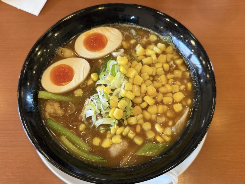 今日のランチは、幸楽苑の株主優待を利用して和風カレーらーめんにコーンと味玉をトッピングしていただきました。