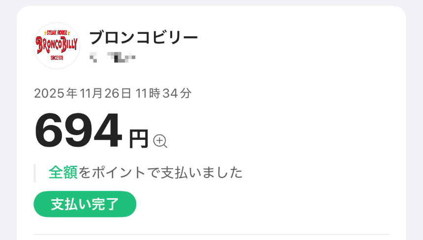 1,694円(税込) 株主優待券1,000円 PayPayポイント694円 支払額0円
