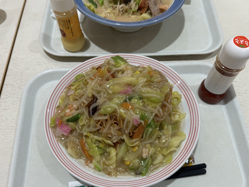 今日のランチは、リンガーハットの株主優待ポイントを利用して、野菜たっぷり皿うどんをいただきました。
