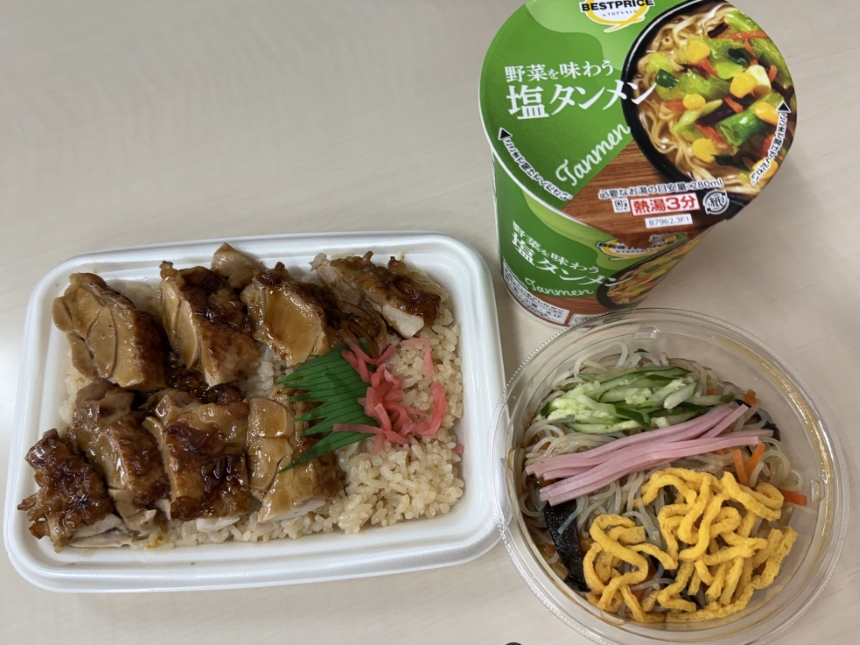 今日のランチは、dポイントを利用して、ファミリーマートの炙り焼 鳥めし弁当、ミニストップでQuoPayを利用して中華春雨サラダを購入しました。