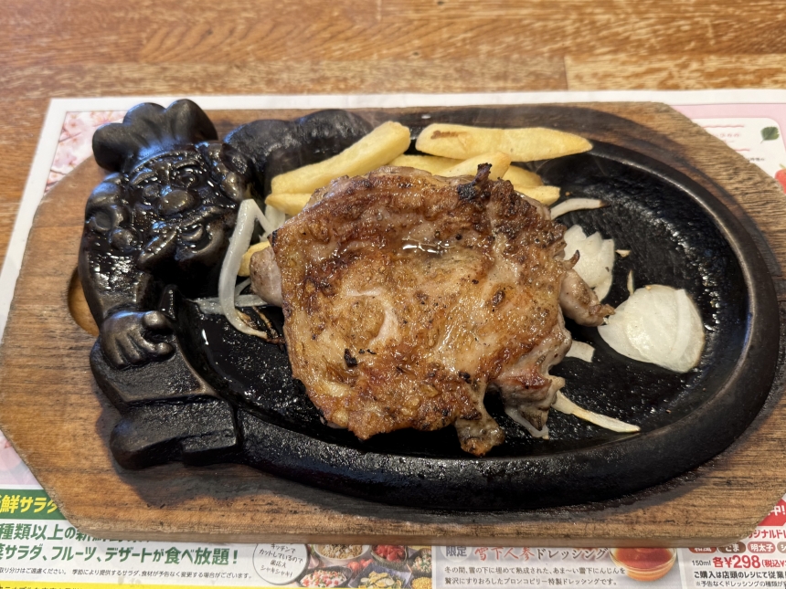 今日のランチは、ブロンコビリーの株主優待券を利用して、炭焼きチキンステーキとサラダバーをいただきました。