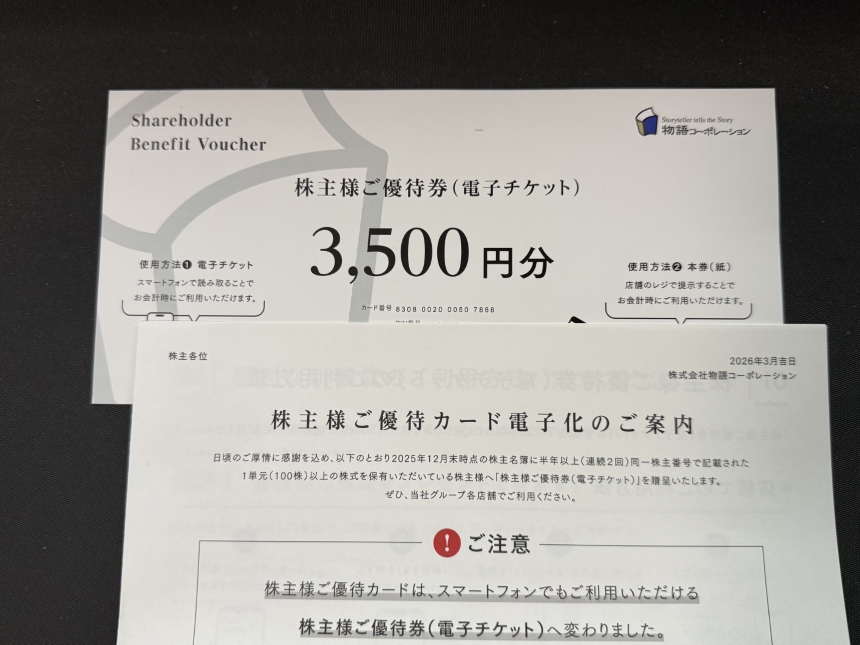 20250310日、物語コーポレーションより株主優待が届きました。