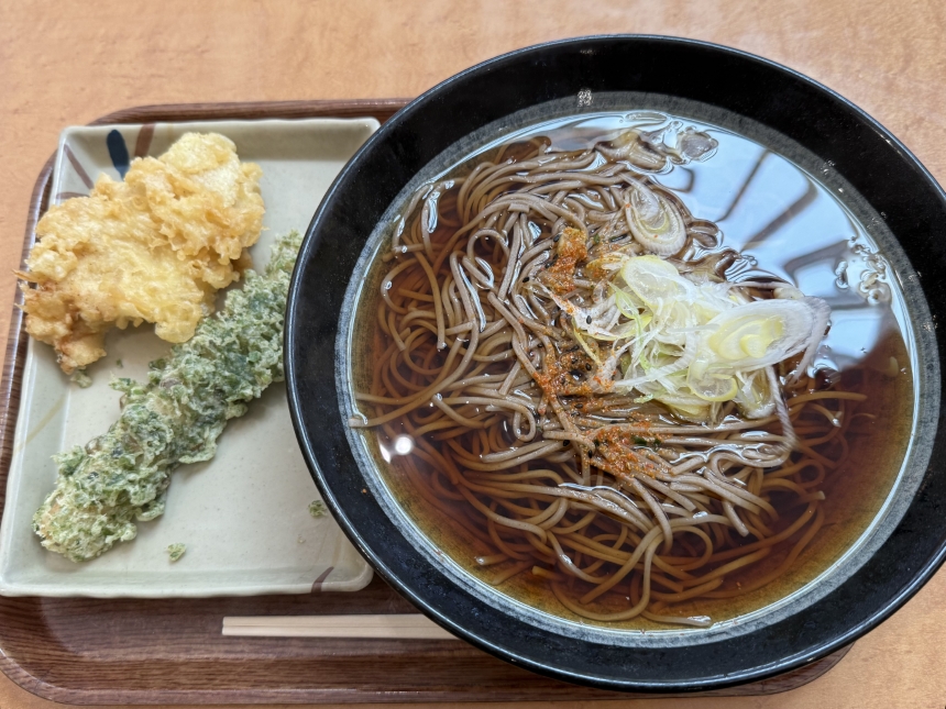 肉麺右衛門 株主優待 かけ蕎麦(中盛) + とり天 + ちくわ天