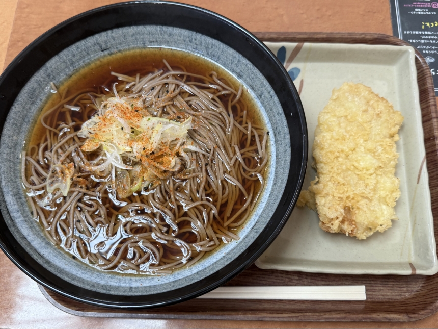 今日のランチは、クリエイトレストランツHDの株主優待券を利用して、肉麺 右衛門のかけ蕎麦ととり天をいただきました。