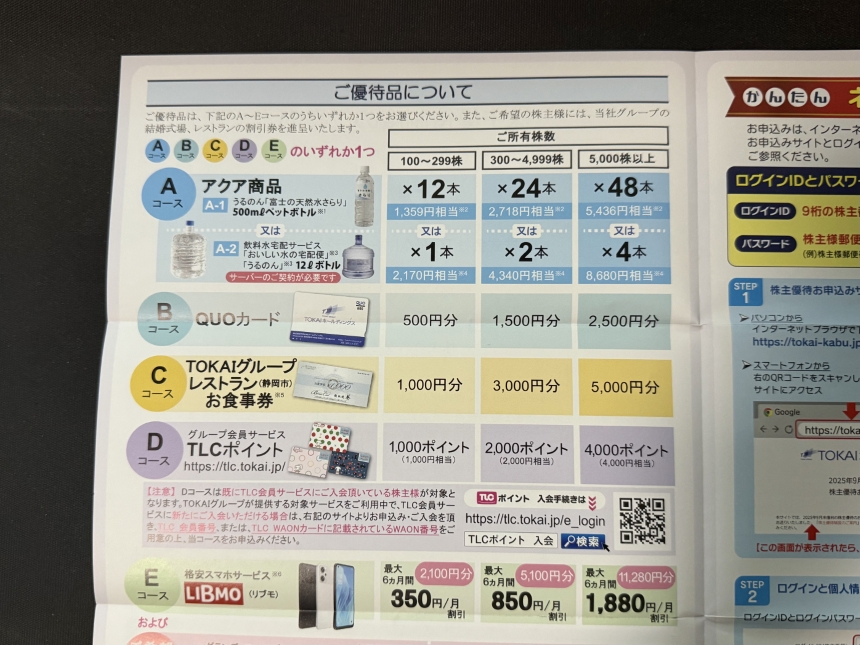 20251201日、TOKAIより株主優待の案内が届きました。