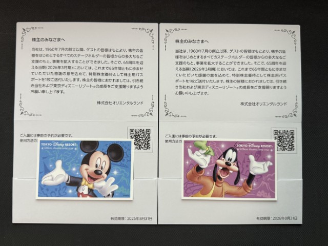20251211日、オリエンタルランドより株主優待が届きました。