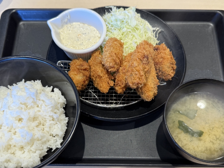 今日のランチは、松屋フーズの株主優待券を利用して、松のやのたっぷりカキフライ(7個)定食をいただきました。