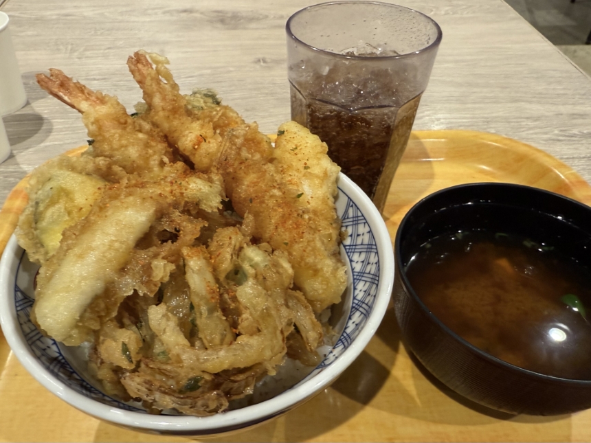 今日のランチはクリエイトレストランツHDの株主優待ポイントを利用して、濱乃屋で上天丼をいただきました。