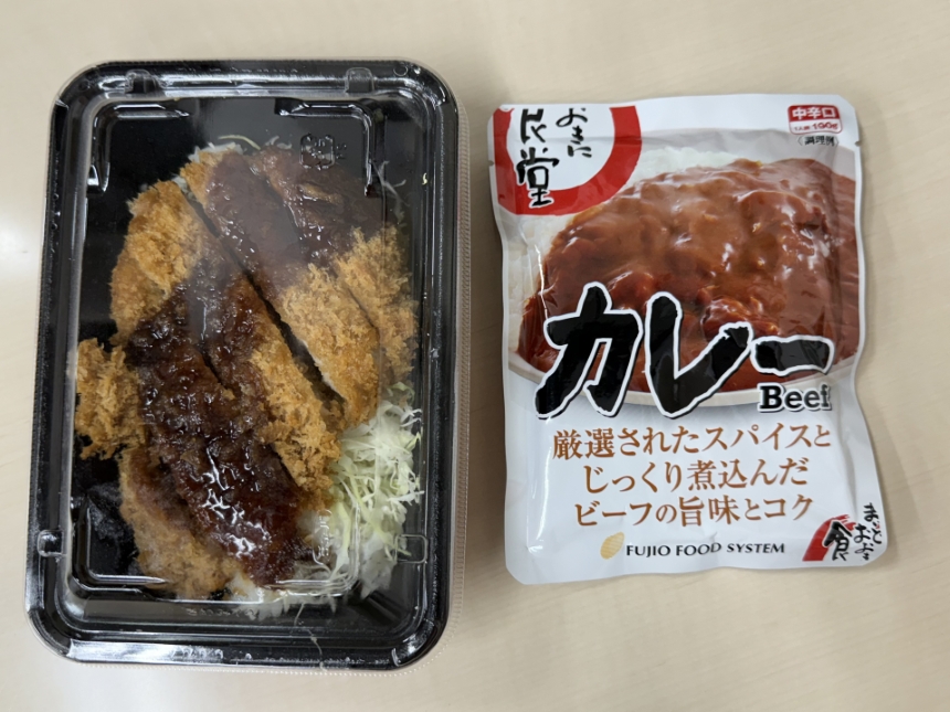 今日のランチは、トリドールの株主優待券を利用して、豚屋とん一の海老フライ弁当をテイクアウト。静岡ガスの優待の横須賀海軍カレーでカツカレー。